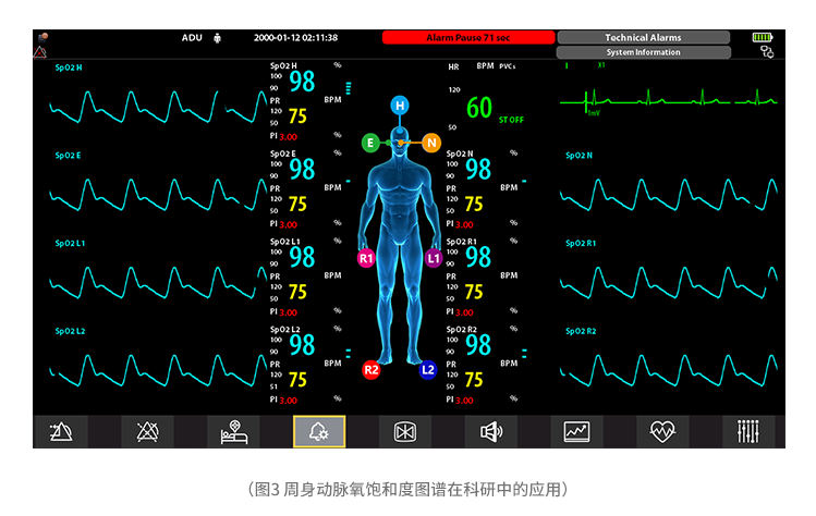 oxygen saturation monitoring has the characteristics of continuous, non-invasive and rapid. Research shows that there may be differences in different parts of the human body at different times, or pathological differences. Research on the human body's peripheral arterial oxygen saturation distribution map is of great significance to the development of precision medicine.