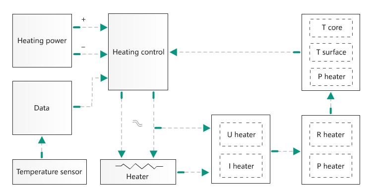 2)Design of Status Monitoring for Floating Tube Heat Release Device: If the catheter is placed outside and the blood is stationary without flow, the system cannot adjust the work of the heat release device through Tb feedback. In order to ensure the safety of patients, reliable control of the system and accurate measurement, the system must monitor the state of the heat release device of the floating catheter in continuous monitoring mode. It mainly includes monitoring the voltage and current flowing through the heat release at both ends of the floating conduit under the measurement condition, so that the changes in the working temperature of the heat release can be analyzed, and the changes in the released power and released energy can be obtained, and the energy release during the monitoring process can be accurately controlled.