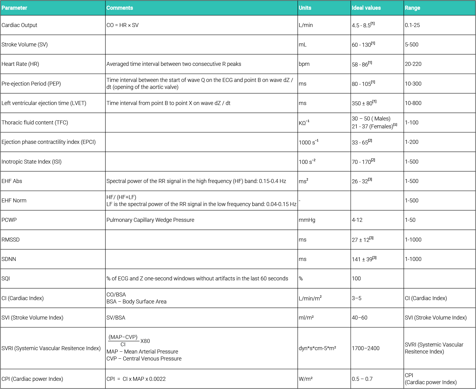 The impedance cardiography (ICG) and electrocardiogram (ECG) by using 4 electrodes, with one pair injecting a constant current, and a second pair of electrodes measuring the resulting voltage. The ICG signal represents the changes of the thoracic impedance due to variations in the blood flow. In practice, the raw Z signal is transformed into the –dZ/dt waveform by using the first derivative to remark the inflection points of the raw Z signal. This signal is post-processed to increase its quality.