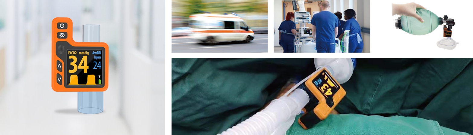 RICap® Rapid Intervention Capnograph, compact and exquisite design and dedicated airway adapter, it is portable, plug-and-play and fast response. It may be used in the operating theater, intensive care unit, patient room, clinic, for emergency medicine and emergency transport settings. It can be used during patient transport inside and outside of the hospital environment.
