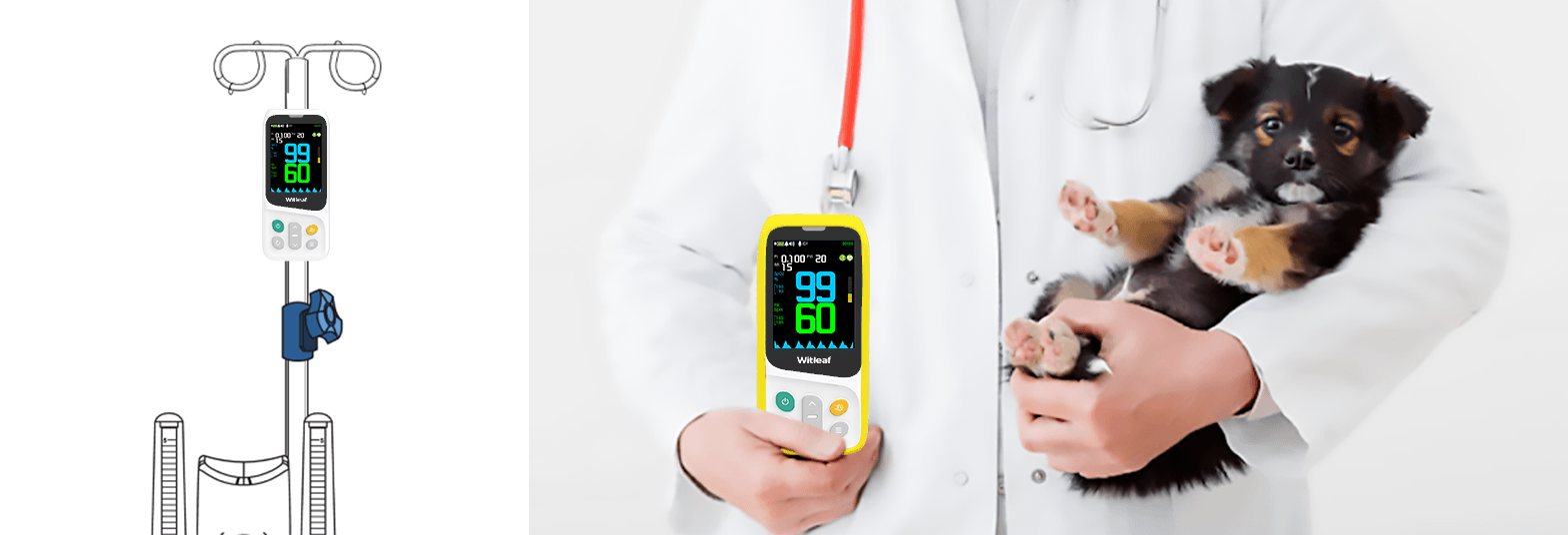 The VM-20 Veterinary Pulse Oximeter can connect to a mobiles app via Bluetooth for data sharing and management.