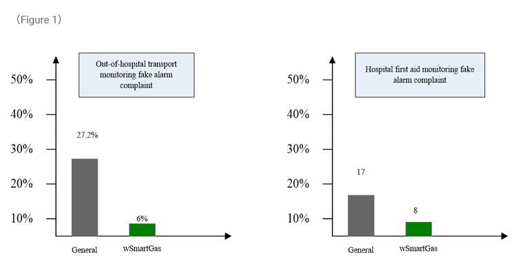 wSmartGas® has a unique identification technology for various interference factors, which can ensure the measurement accuracy in various clinical applications. Such as adaptive compensation technology for different application environment temperature, atmospheric pressure and humidity; compensation technology for anesthetic gas, nitrous oxide gas and oxygen that may exist in breathing gas. Long-term clinical application shows that wSmartGas® technology can effectively improve the accuracy of patient end-tidal carbon dioxide monitoring and patient safety. The figure below shows the statistics of the application benefits of wSmartGas® during in-hospital transport and first aid.