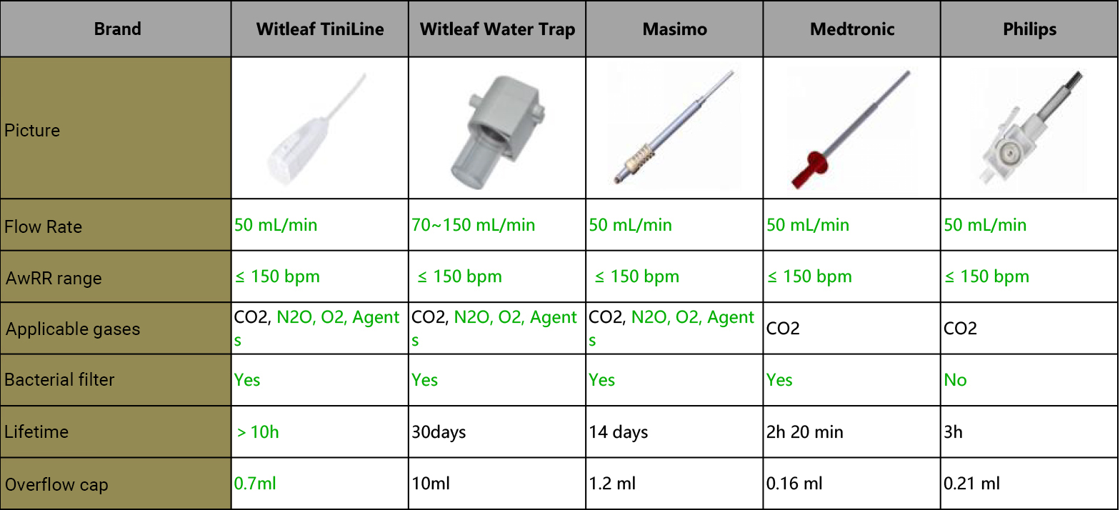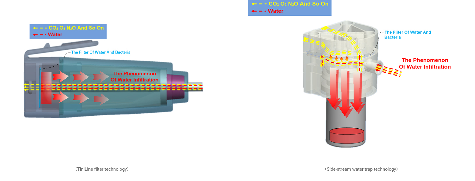 wSmartGas® rapid response technology includes CapnoSET® measurement technology applied to mainstream end-tidal carbon dioxide measurement and TiniStream® measurement technology applied to Sidestream type, through sample gas pretreatment and self-adaptive compensation to achieve plug-and-play fast response to avoid warm-up waiting time, effectively reducing clinically reasonable misuse and improving treatment efficiency. The breathing gas of the human body is saturated water vapor. When the ambient temperature is low, for mainstream end-respiratory carbon dioxide measurement, water droplets will condense on the inner surface of the measuring gas chamber, resulting in infrared light scattering that penetrates the measurement chamber and overestimates the concentration of end-of-respiration carbon dioxide. wSmartGas® adopts CapnoSET® mainstream airway adaptation technology to ensure the accuracy of measurement by adjusting the incident angle of the infrared light incident surface to avoid the scattering of infrared light penetrating through the measurement chamber; As side-flow end-tidal carbon dioxide measurement will cause condensed liquid to accumulate, reduce the service life of the sampling pipeline and even damage the measurement equipment, wSmartGas® effectively filters out the condensed liquid of the measured gas through the TiniStream® measurement technology to improve the measurement accuracy and corresponding time while prolonging the life of the sampling line.