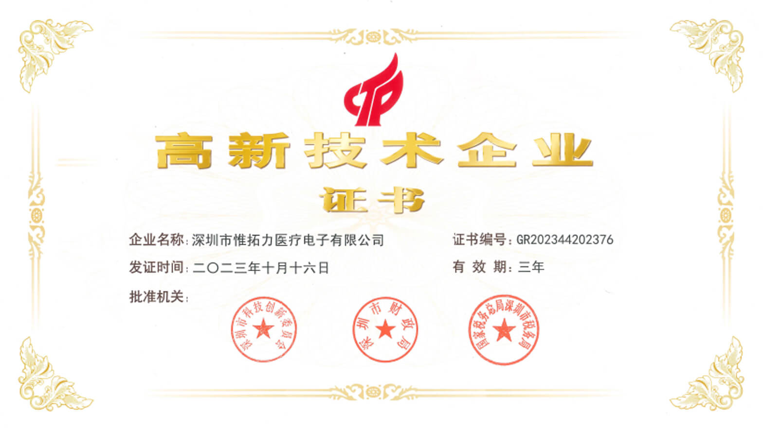 喜讯! 公司再次荣获2023年高新技术企业证书!