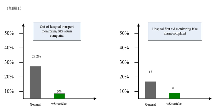 wSmartGas® 针对各种干扰因素均有独到的识别技术,能够保证在各种应用场景下的测量准确性。如针对不同应用环境温度、大气压力以及湿度的自适应补偿技术;针对呼吸气体中可能存在的麻醉气体、笑气以及氧气等的补偿技术。长期的临床应用显示wSmartGas®技术能够有效的提升病人呼吸末二氧化碳评估的淮确性以及病人的安全性。如图1所示,在院内外转运以及急救过程中wSmartGas®的应用获益统计。