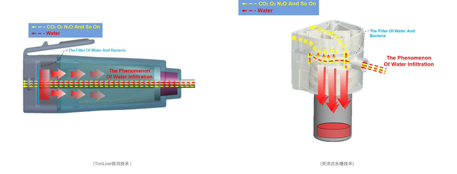 wSmartGas® 快速响应技术包括应用与主流式呼吸未二氧化碳测量的Cap-noSET®测量技术以及应用于旁流式的Tinistream®测量技术,通过样气预处理以及自适应补偿实现即插即用的快速响应避免预热等待时间,有效的减少了临床合理的误用提升了救治效率。人体的呼吸气体为饱和水蒸气,在环境温度较低时,针对主流式呼吸末二氧化碳测量,会在测量气室内表面冷凝形成水滴,导致穿透测量气室的红外光散射造成呼吸末二氧化碳浓度的高估,wSmartGas®通过CapnoSET®主流式气道适配技术通过调整红外光线入射面的入射角度避免穿透测量气室红外光的散射保证测量的准确性;针对旁流式呼吸未二氧化碳测量会造成凝结液体聚集,减小采样管路的使用寿命甚至损坏测量设备,wSmartGas®通过TiniStream®测量技术技术有效的滤除了被测气体凝结的液体提升测量精度及相应时间的同时延长了采样管路使用寿命。